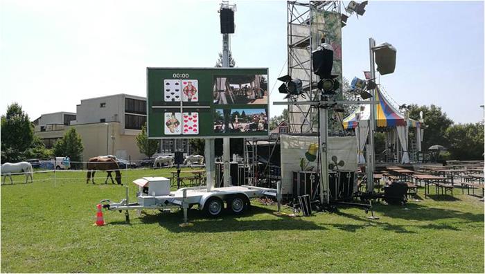 Display LED all'aperto fissatu nantu à una rimorca mobile