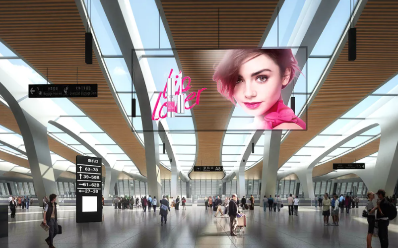 Cume una parte di a trasformazione digitale di i media di l'aeroportu, u schermu trasparente LED hè diventatu u media più vantaggiosu per via di u so effettu di visualizazione unicu è e caratteristiche tecniche digitali.